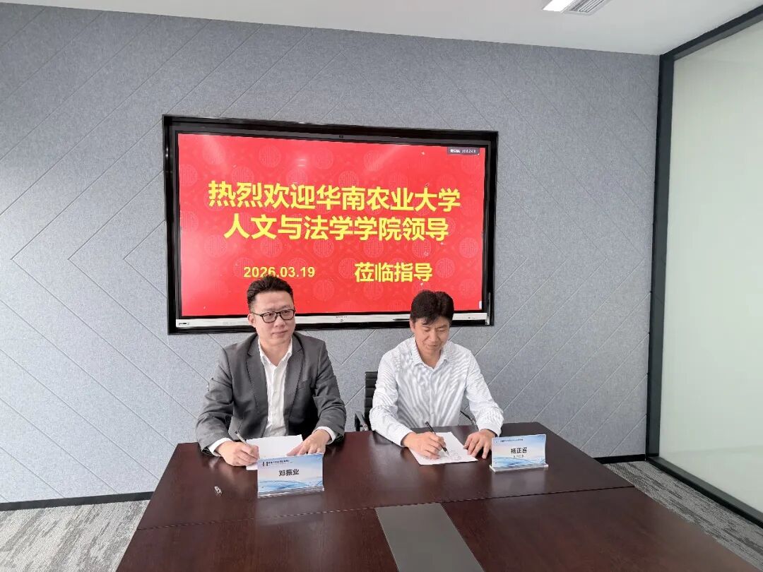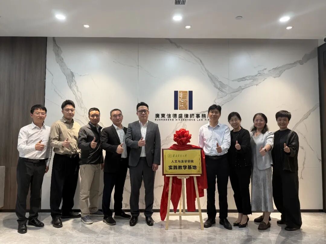 在热烈友好的氛围中,双方就合作细节达成高度共识,并现场签署了合作协议。随后,杨院长与邓主任共同为 “广东信德盛律师事务所—华南农业大学人文与法学学院实践教学基地” 揭牌。标志着双方长期、稳定、深入的战略合作关系正式建立,拉开了协同育人新篇章的序幕。